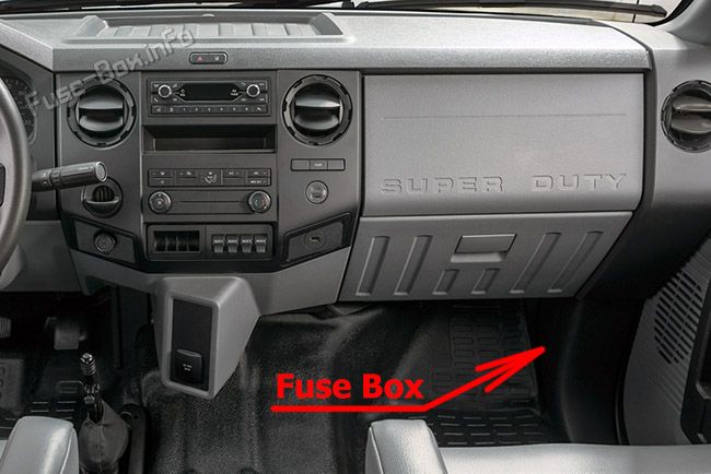 Панель предохранителей находится в нише для ног пассажира. Снимите крышку панели, чтобы получить доступ к предохранителям. Потяните крышку панели предохранителей на себя, чтобы снять ее. Когда фиксаторы панели отсоединятся, дайте панели легко упасть.
