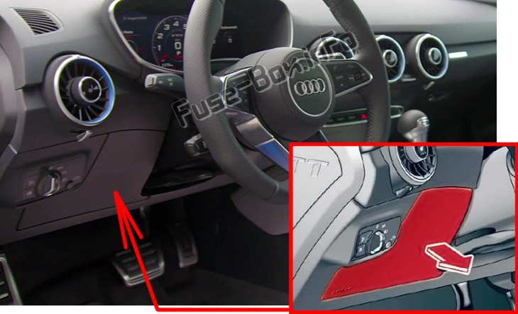 Блок предохранителей расположен за крышкой слева от рулевого колеса.