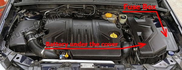 Чтобы получить доступ к предохранителям в блоке предохранителей рядом с аккумулятором, снимите защитную крышку.