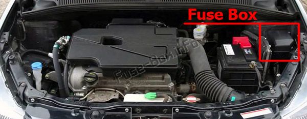 Блок предохранителей расположен в отсеке двигателяРасположение предохранителей в отсеке двигателя: Fiat Sedici (2006-2014)