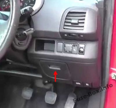 Блок предохранителей расположен под рулевым колесом, за крышкой.Расположение предохранителей в салоне: Nissan Micra / March (2003-2010)