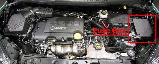 Схема блока предохранителей под капотом: Opel / Vauxhall Adam (2014)