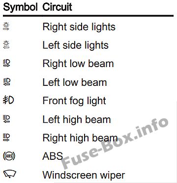 Назначение предохранителей в грузовом отсеке (Комби)