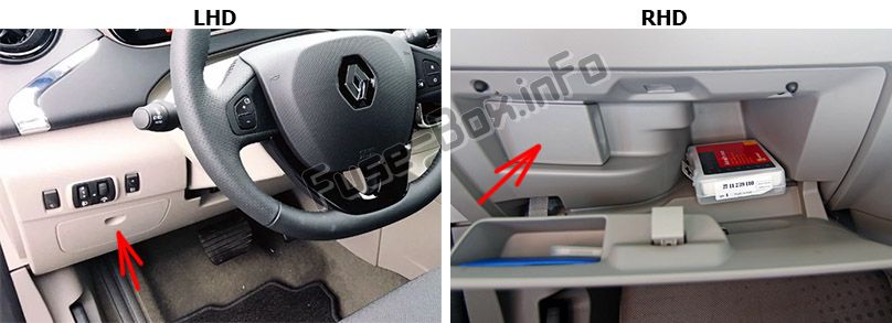 Автомобили с правым рулем: Он расположен в бардачке за крышкой.