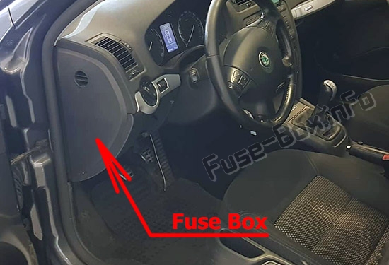 Предохранители расположены на левой стороне панели приборов за защитной крышкой.Расположение предохранителей в салоне: Skoda Octavia (Mk2/1Z; 2005-2008)