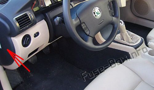 Блок предохранителей расположен с левой стороны панели приборов за крышкой.