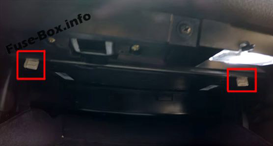 Откройте бардачок, поверните два фиксатора и опустите панель, чтобы получить доступ к предохранителям.