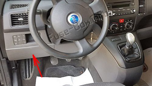 Он расположен на левой стороне приборной панели.The location of the fuses in the passenger compartment: Fiat Idea (2003-2012)