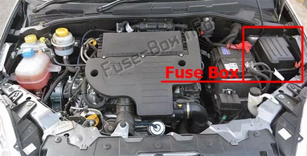 Чтобы получить доступ к предохранителям в блоке предохранителей рядом с аккумулятором, снимите защитную крышку.