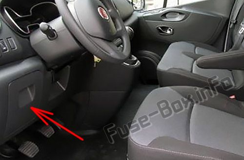 Блок предохранителей расположен слева от рулевого колеса в отделении для хранения.Расположение предохранителей в пассажирском отсеке: Fiat Talento (2016, 2017, 2018, 2019-..)