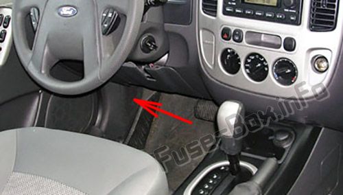 Блок предохранителей расположен на левой боковой панели.Расположение предохранителей в салоне: Ford Escape (2001, 2002, 2003, 2004)