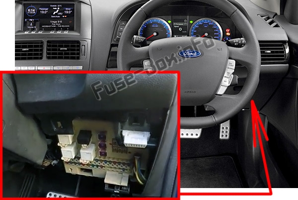 Он расположен за панелью на стороне водителя.The location of the fuses in the passenger compartment: Ford Falcon (FG; 2011-2012)