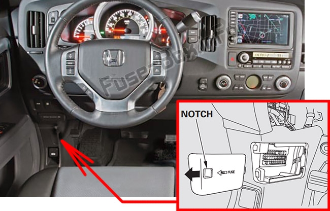 Схема блока предохранителей в салоне: Honda Ridgeline (2009, 2010, 2011, 2012, 2013, 2014)