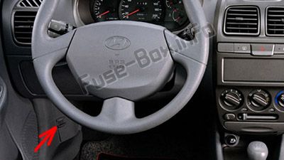 Автомобили с левым рулемРасположение предохранителей в салоне: Hyundai Accent (2000-2006)