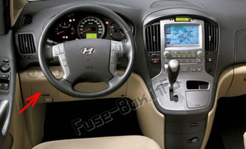 Блок предохранителей расположен в нижней части панели приборов (со стороны водителя), за крышкой.Расположение предохранителей в пассажирском отсеке: Hyundai H-1 / Grand Starex (2008-2018)