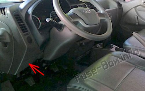 Блок предохранителей расположен на стороне водителя панели приборов за крышкой.
