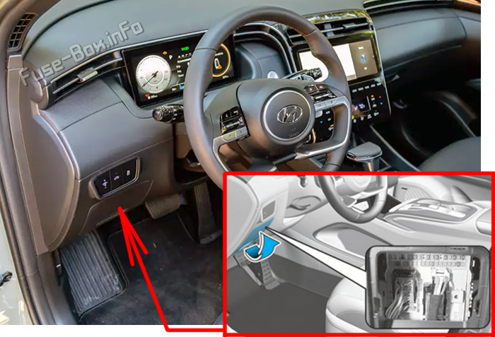 Блок предохранителей расположен в боковой панели со стороны водителя. Обратитесь к этикетке на внутренней стороне крышки блока предохранителей, чтобы найти расположение предполагаемого предохранителя.