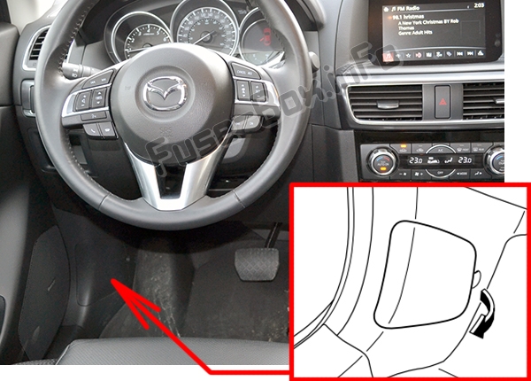Блок предохранителей расположен за крышкой на левой стороне автомобиля, под приборной панелью.