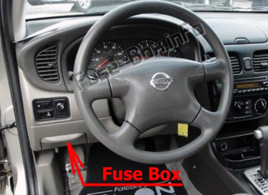 Блок предохранителей расположен ниже и слева от рулевого колеса за отделением для хранения.Расположение предохранителей в салоне: Nissan Sentra (2000-2006)