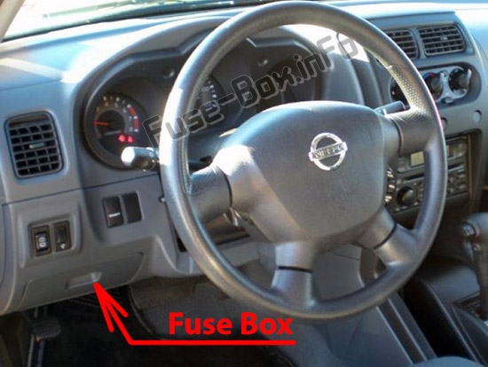 Блок предохранителей расположен за крышкой ниже и слева от руля.