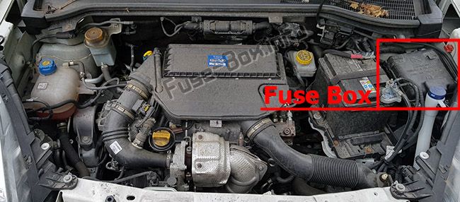 Блок предохранителей находится справа в моторном отсеке, рядом с аккумулятором.Расположение предохранителей в моторном отсеке: Opel/Vauxhall Combo D (2012-2018-...)