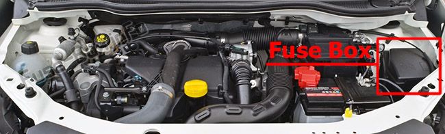 Коробка предохранителей расположена за крышкой на приборной панели.