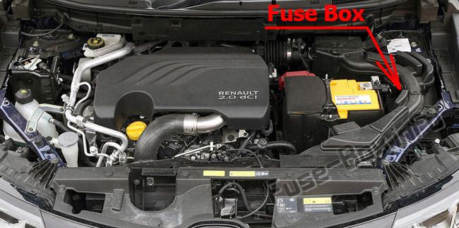 Расположение предохранителей в моторном отсеке: Renault Koleos I (2007-2015)
