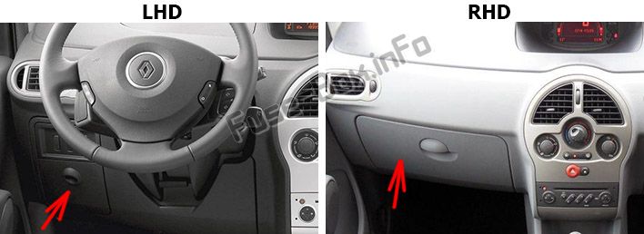 | F4 | 30 | Кондиционер и блок вентилятора охлаждения на двигателях K4M / K4J / D4F с механической коробкой передач Реле электрического насоса блока последовательной коробки передач на двигателях K9K с последовательной коробкой передач |