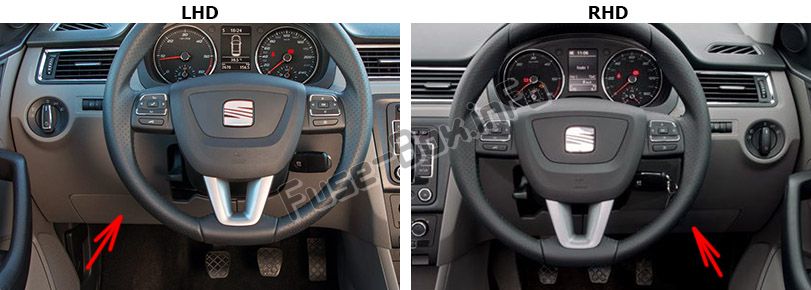 Предохранители расположены на панели приборов со стороны водителя за крышкой.