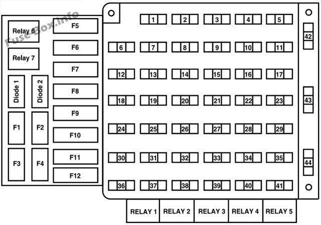 Домой Предохранители и реле Схема предохранителей шасси Ford F53 / F59 без надстройки 2013, 2016, 2017