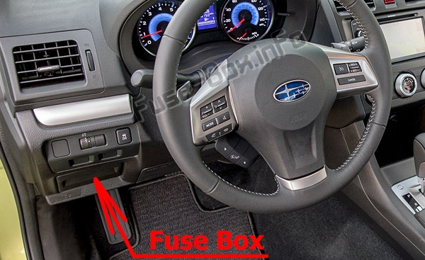 Блок предохранителей расположен в панели приборов за крышкой на стороне водителя.Расположение предохранителей в салоне: Subaru Crosstrek / XV (2011-2017)