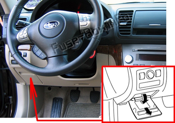 Блок предохранителей расположен за крышкой слева от рулевого колеса.