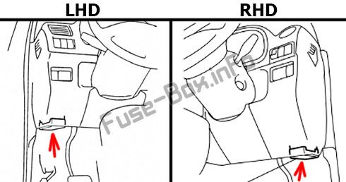 Блок предохранителей расположен под приборной панелью (со стороны водителя).Расположение предохранителей в салоне: Suzuki Jimny (2000-2017)