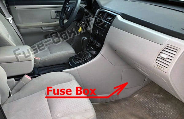 Блок предохранителей расположен за крышкой на стороне пассажира центральной консоли.