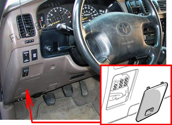 Блок предохранителей расположен на стороне водителя на приборной панели, за крышкой.
