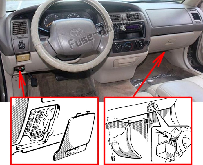 Схема блока предохранителей в салоне: Toyota Avalon (1995, 1996, 1997, 1998, 1999)
