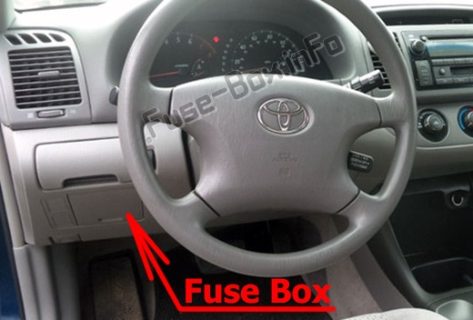 Блок предохранителей расположен в приборной панели, за крышкой слева от рулевого колеса.Расположение предохранителей в салоне: Toyota Camry (XV30; 2002-2006)