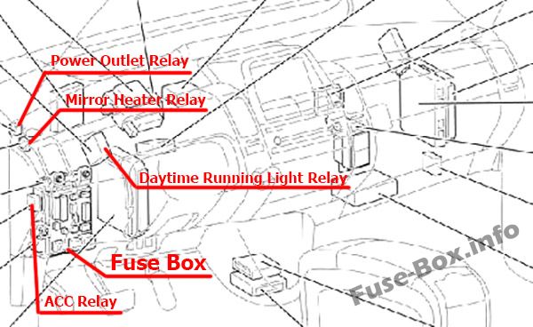 Блок предохранителей расположен под приборной панелью на стороне водителя, под крышкой.