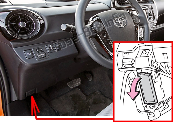 Блок предохранителей расположен под панелью приборов (слева), под крышкой.