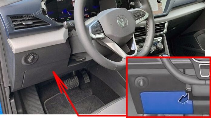 Предохранители находятся за крышкой на стороне водителя. Снимите крышку, потянув ее в сторону по направлению стрелки.