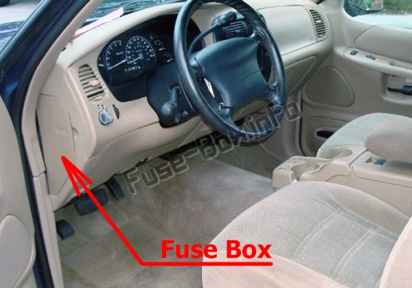 Блок предохранителей расположен с левой стороны приборной панели,面向 двери водителя.Расположение предохранителей в салоне: Ford Explorer (1996-2001)