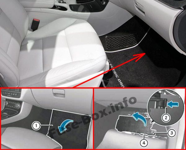 Блок предохранителей расположен под полом рядом с пассажирским сиденьем.