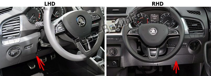 Блок предохранителей расположен за крышкой под рулевым колесом.